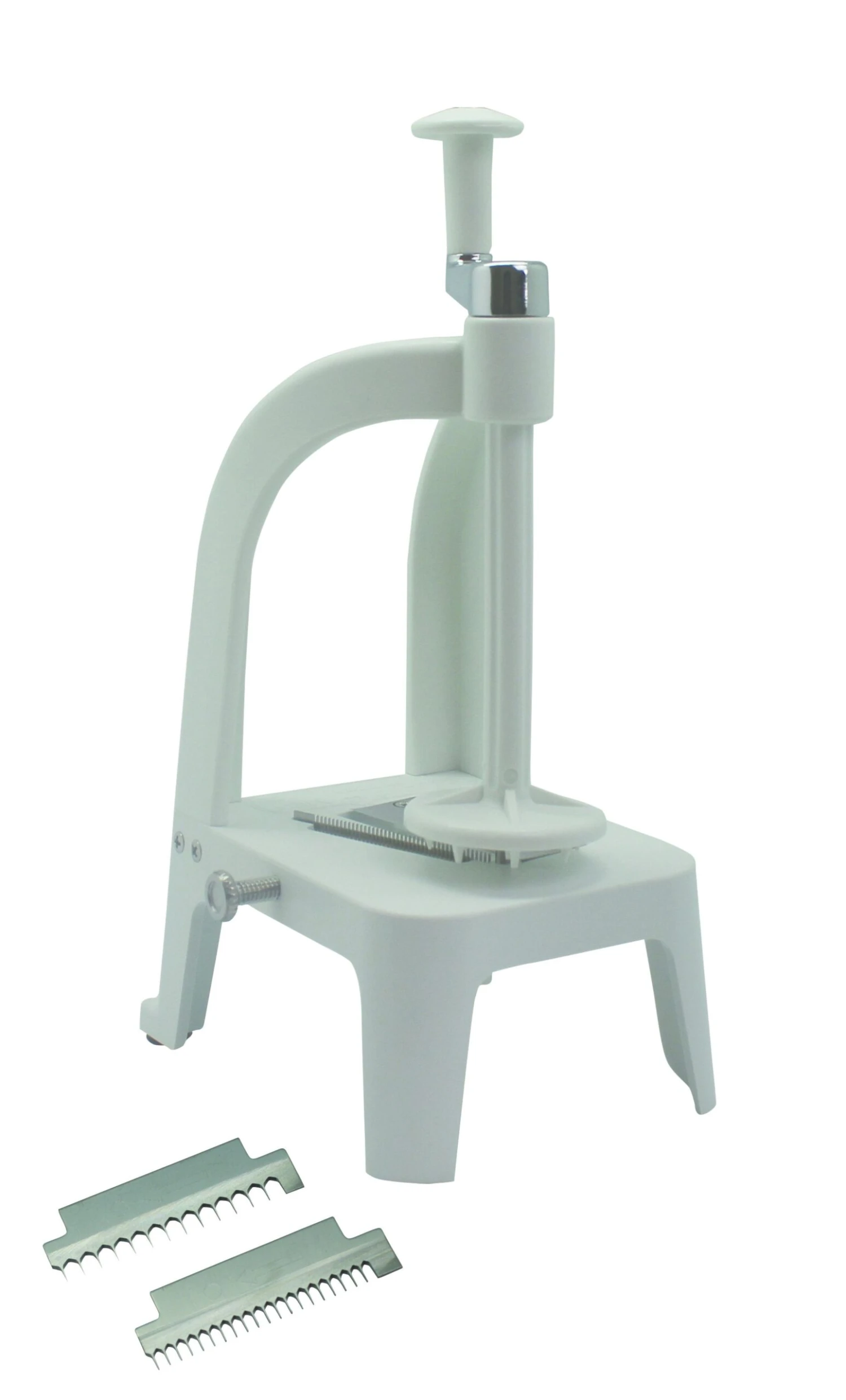 Fine-toothed blade will help you create elegant vegetable garnishes for professional-looking meals. Medium-toothed blade is excellent for quick and easy uniform stir-fry pieces that will cook up in a flash. Coarse-toothed blade can make chunky and crisp cuts of vegetable or fruits. Great for potatoes, onions, radishes, cucumbers, carrots, apples and peaches.