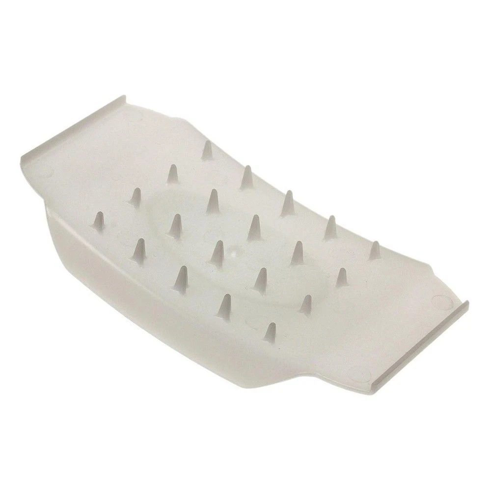 The front of the Benriner mandolin is enhanced with a rubber anti-slip foot to make sure the mandolin does not move as you use it. The cut-out underneath the mandolin is placed on the edge of a bowl so the slices will immediately fall into the bowl.