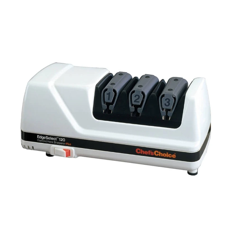 Keep your favourite knives looking as sharp as the day you bought them with this Chef’sChoice Diamond Hone EdgeSelect Knife Sharpener 120 is a quality knife sharpener that will restore worn blades and provide fast, efficient sharpening. Suitable for European and serrated knives, this blade sharpener is engineered to remove the most common cause of dull knives, the edge.