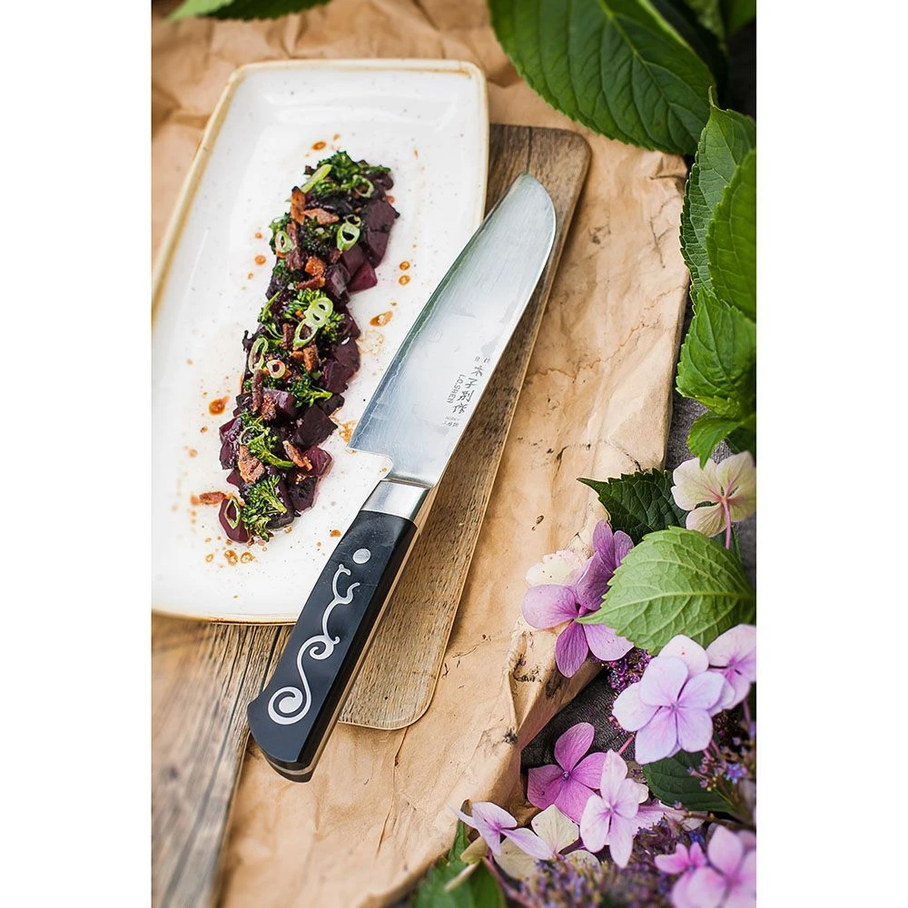 The 16cm ultra-sharp blade is crafted from the highest-quality Japanese stainless steel and is ice hardened to make it easy to sharpen so that it stays looking and performing at its best for years to come.
