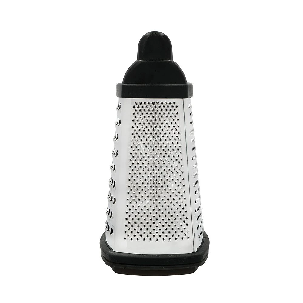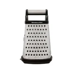 This KitchenAid Box Grater features four blades – coarse, medium, fine and slice – to quickly grate cheese, chocolate, breadcrumbs and other ingredients. A storage container slots into the base of the grater to catch grated food, helping to reduce mess and allowing for easy storage. The container is marked with ½ cup, 1 cup, 1½ cup and 2 cup capacities, as well as their millilitre equivalents. Dishwasher safe for easy cleanup.