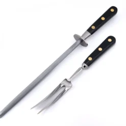 Sabatier® Ideal Brass Rivets 20cm Yatagan Curved Carving Knife Set (c/w 17cm Carving Fork)
