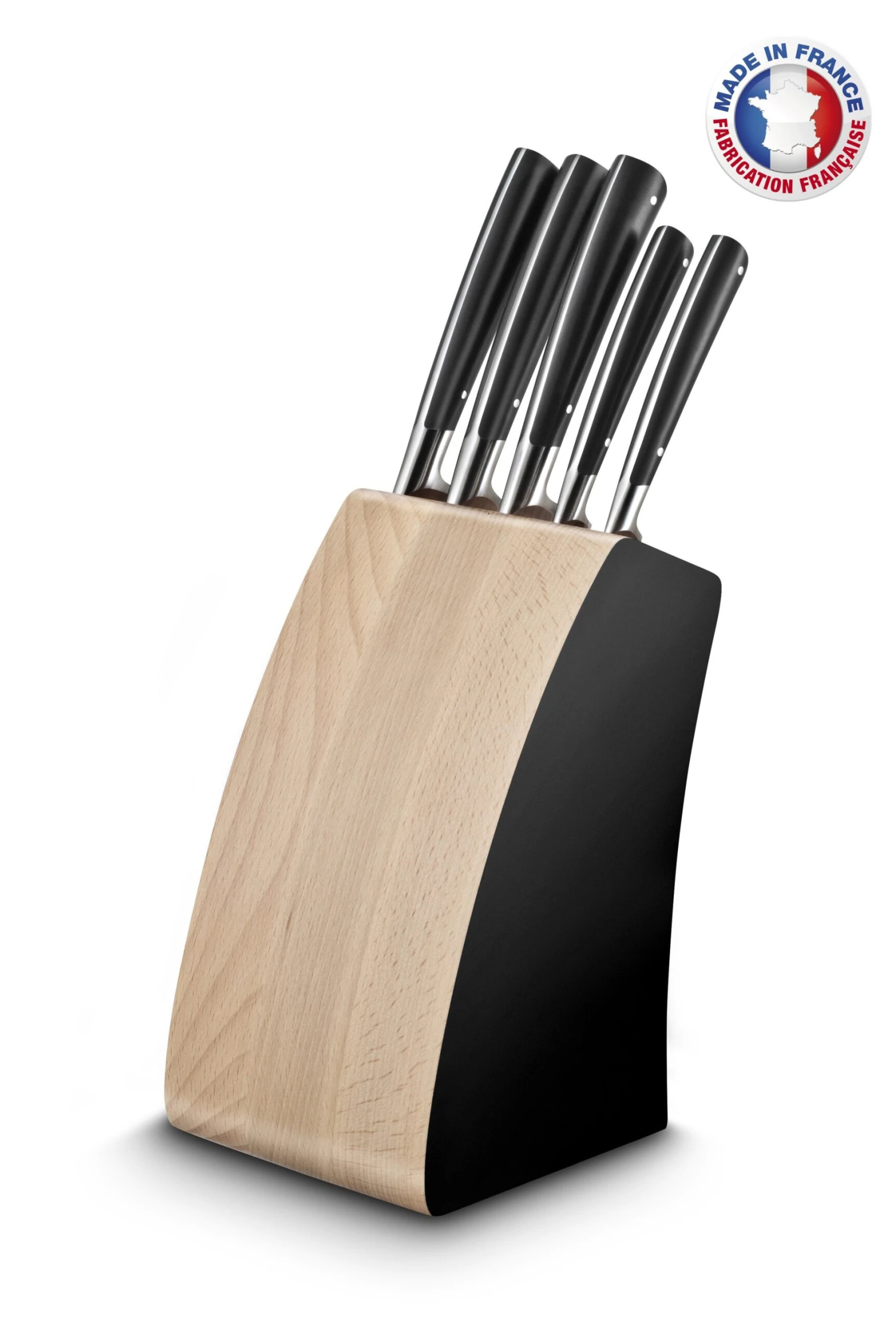This beautiful, fully forged knife block set is made from high-quality steel and will last a lifetime. The knives are sharp and have excellent edge retention, making them perfect for kitchen prep work. The contemporary modern styling is sure to make your kitchen look stylish and chic. This set is hand finished and polished by skilled craftsmen in France to ensure the quality you expect from a Lion Sabatier® product.