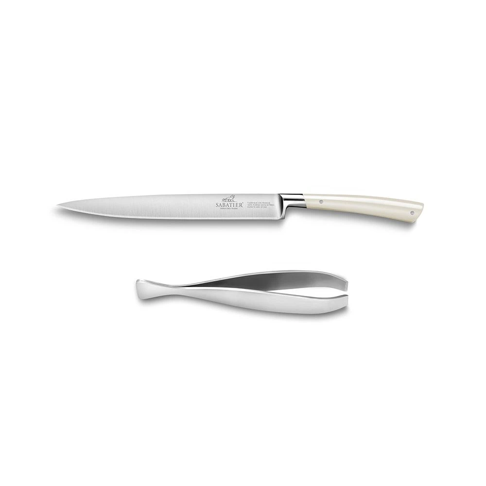 - 807581 – Lion Sabatier® Edonist Perle 18cm Flexible Filleting Knife (Pearl Handle with Stainless Steel Rivets), to help you lift the fish fillets
