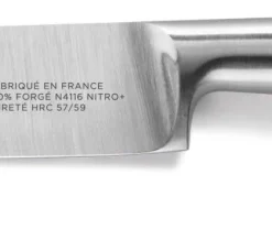 The Lion Sabatier® Edonist Utility Knife 13cm is a fully forged knife made from high quality N4116 Nitro+ steel. The lifetime warranty and the contemporary modern styling makes this a must-have for any kitchen drawer. The hand finished, polished blade has excellent sharpness and edge retention. It also has a Rockwell hardness of 58° (this is the same as a Global knife). This utility knife is not suitable for dishwashing – hand wash in warm water with a mild detergent, rinse, dry immediately and store safely.