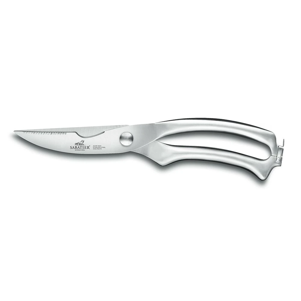 These Sabatier Pluton Poultry Shears are part of the world-renowned Sabatier International range. The Lion Sabatier factory in Thiers, France, produces the exacting Sabatier knives that are sold around the world. Rousselon Dumas-Sabatier, one of the most renowned and well-known knife producers in France, has been making Sabatier knives for over 180 years. These poultry shears are straightforward to use at home and are comfortable to hold. The handles are contoured to fit your hand perfectly. The cutting edge is sharp and has a triple-rivet handle. The black finish of the blade contrasts beautifully with the steel.