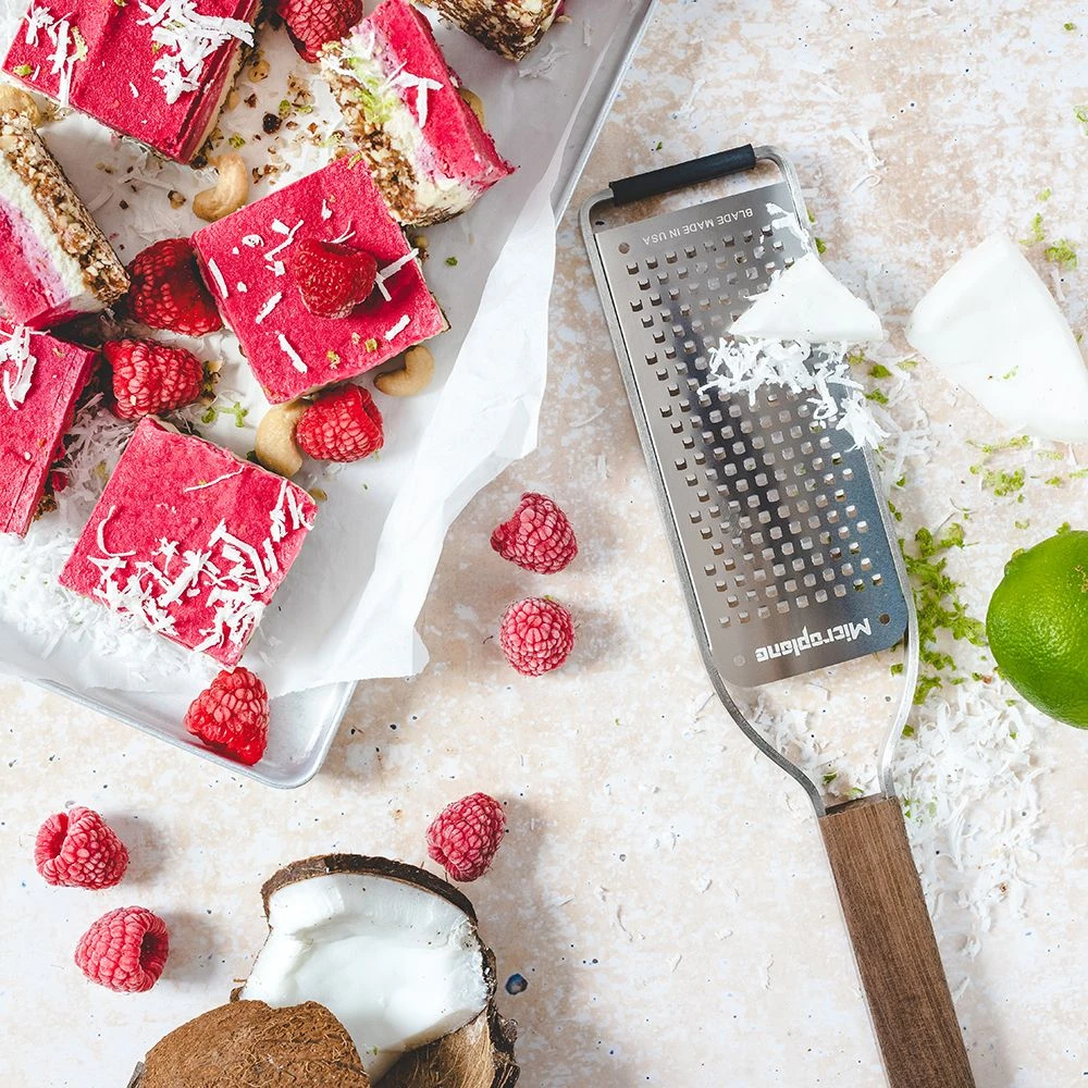 The Master Series Microplane Course Grater has a long-lasting stainless steel blade that is ultra sharp and made of wood sourced from sustainable American Walnut handle. It has a comfortable, grip handle that is perfect for grating a variety of cheeses, carrots, courgettes, and other vegetables. The grater cuts by wounding rather than crushing the ingredients, resulting in a stable, well-grated result. The Grater can be washed by hand and stored in its protective cover.