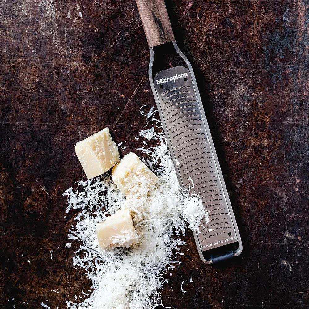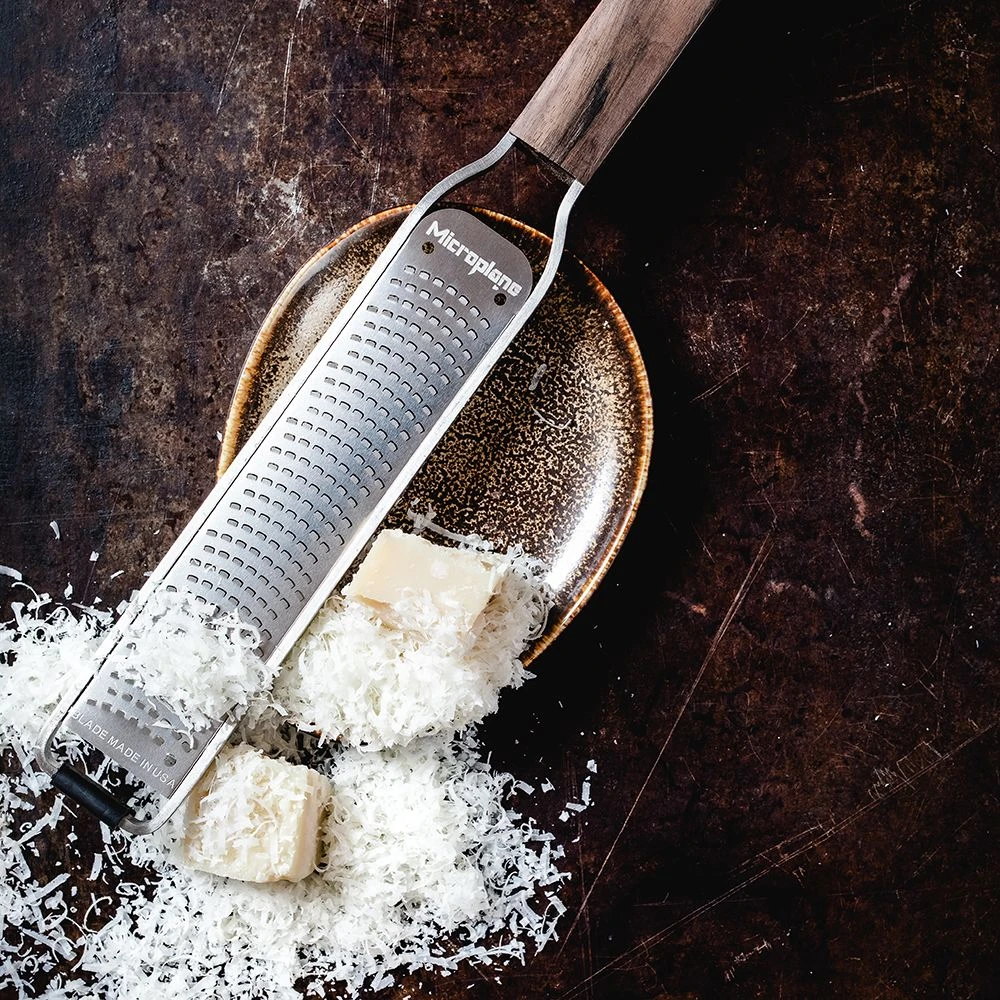 The Microplane Master Series Zester finely grates by cutting with the ultra sharp blade and not crushing the ingredients leaving them mushy and unusable.