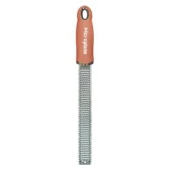 This Microplane Premium Classic Series Zester/Grater in Cinnamon Orange has a photo-etched stainless steel blade for ultra sharp and long lasting performance when zesting citrus fruits.