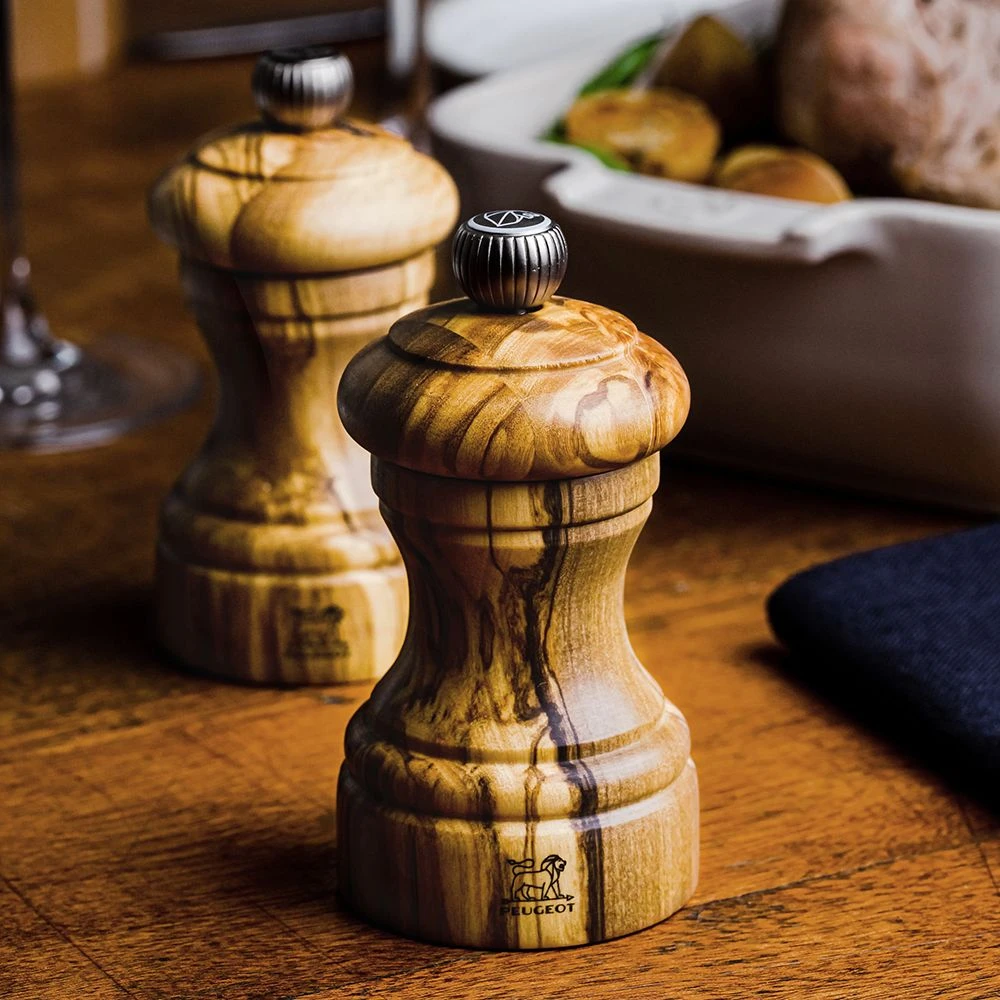 The Peugeot Bistro Salt Mill 10cm Olive is a 10cm salt mill that features a classic grinding system. The mill has an olive wood finish and is perfect for grinding fresh rocksalt and creating the most flavorful dishes each and everytime.