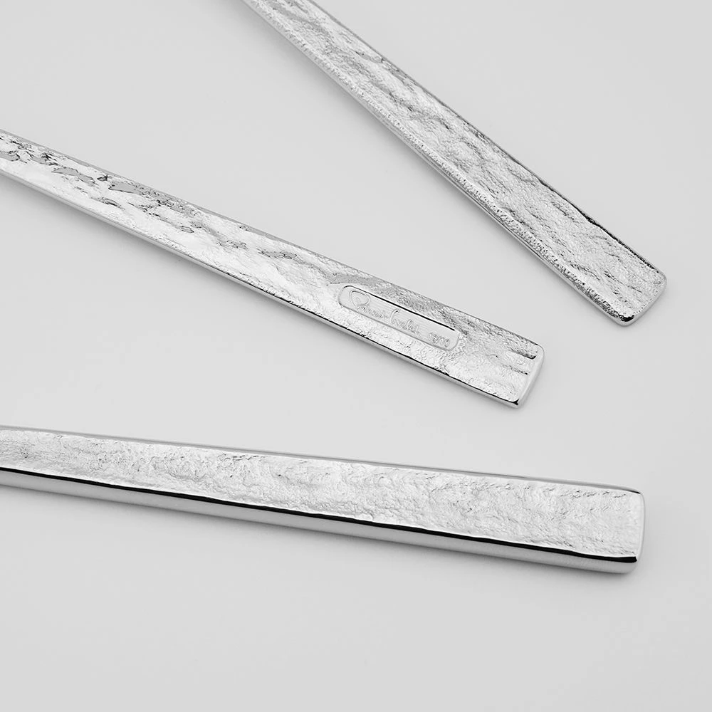 Blockley Slate Bright cutlery features a tactile, stone-like texture on the surface along the length of each handle, both front and back. When highlighted in daylight or by candlelight the pattern has a unique lustre, creating a statement on the table alongside both formal and casual tableware. Blockley Slate Bright cutlery has been created to be perfectly balanced and satisfying to hold and use.
