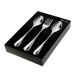 All Honeybourne cutlery is available with a mirror finish, has a lifetime guarantee and is dishwasher safe.The set includes: 2 serving spoons and 1 serving fork.