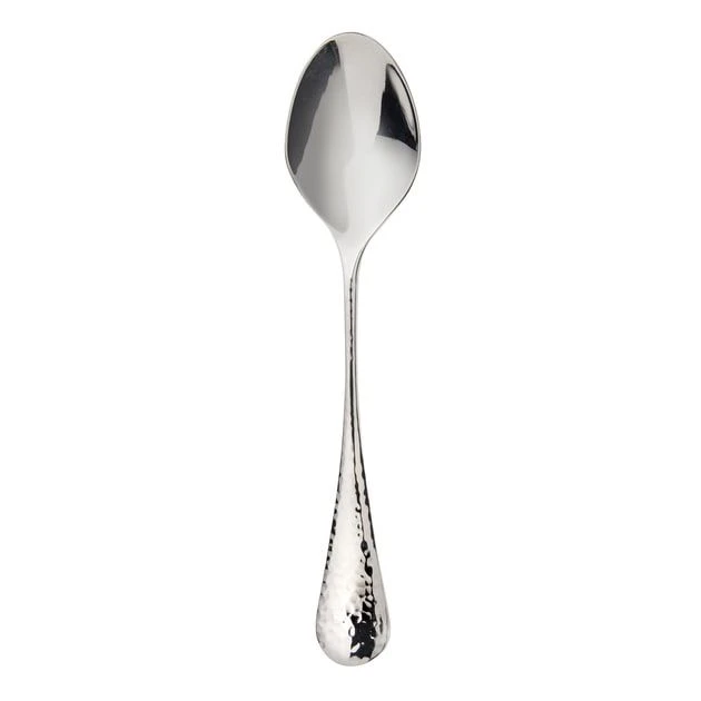 Honeybourne is a versatile design suitable for the modern and traditional home alike, with classically proportioned long tines and a traditional heel. Handles feature a textured finish inspired by the silver smith technique of planishing. Spoons and forks are made using the highest quality 18/10 stainless steel. Knife blades are made from specially hardened stainless steel to provide the finest possible cutting edge.