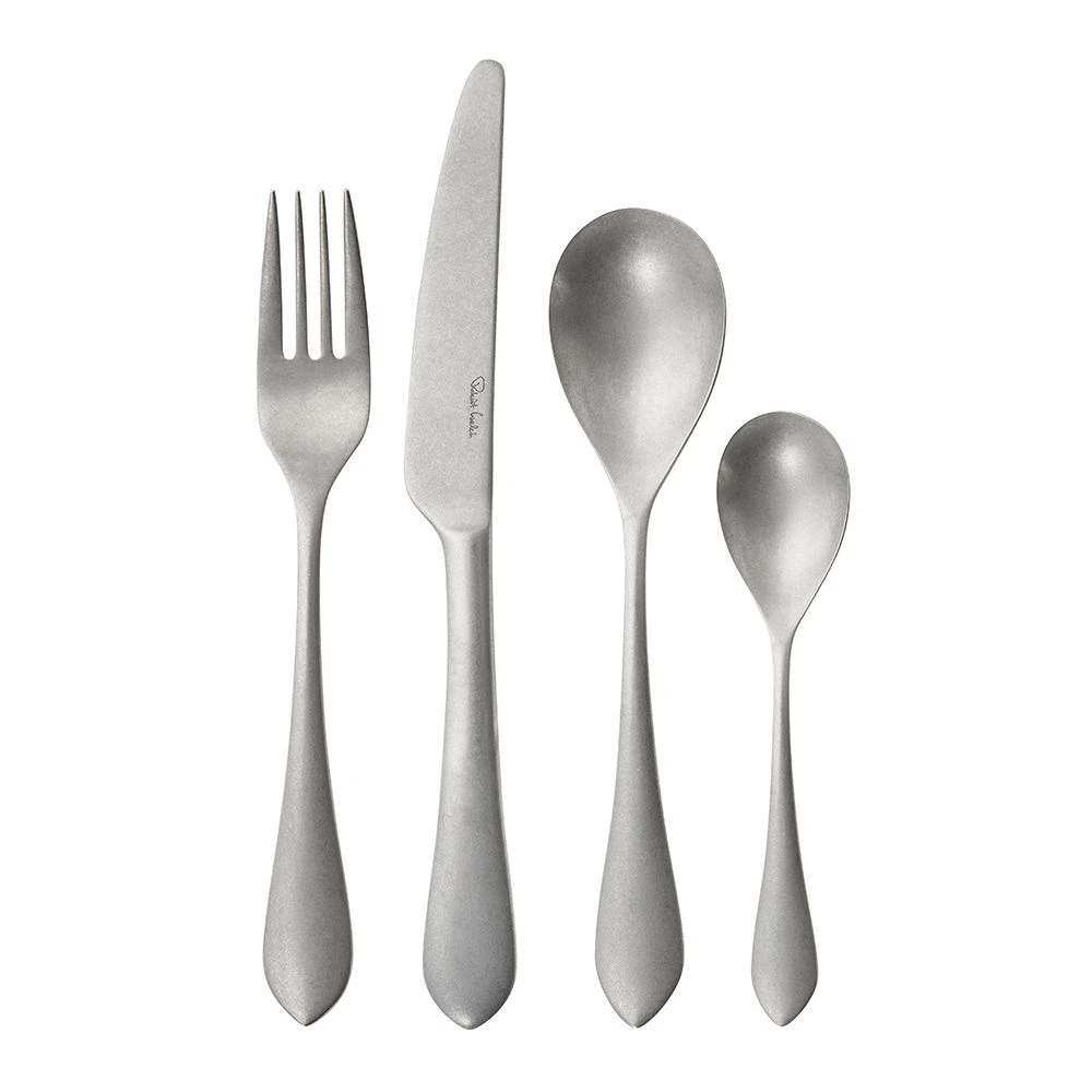 Featuring short tines and sturdy heads, the contemporary design makes it the perfect selection for a variety of table settings as well as more casual dining. The industrial, tumbled finish gives the pieces a unique visual lustre. A gentle, matt finish to bring a relaxed, vintage style to your dining table.
