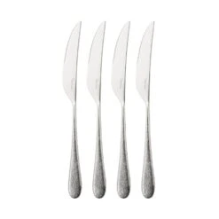 A 4 piece gift boxed steak knife set from the beautifully sophisticated cutlery pattern Sandstone. Mirror-polished finish and made from specially hardened stainless steel. This set has a lifetime guarantee and is dishwasher safe.