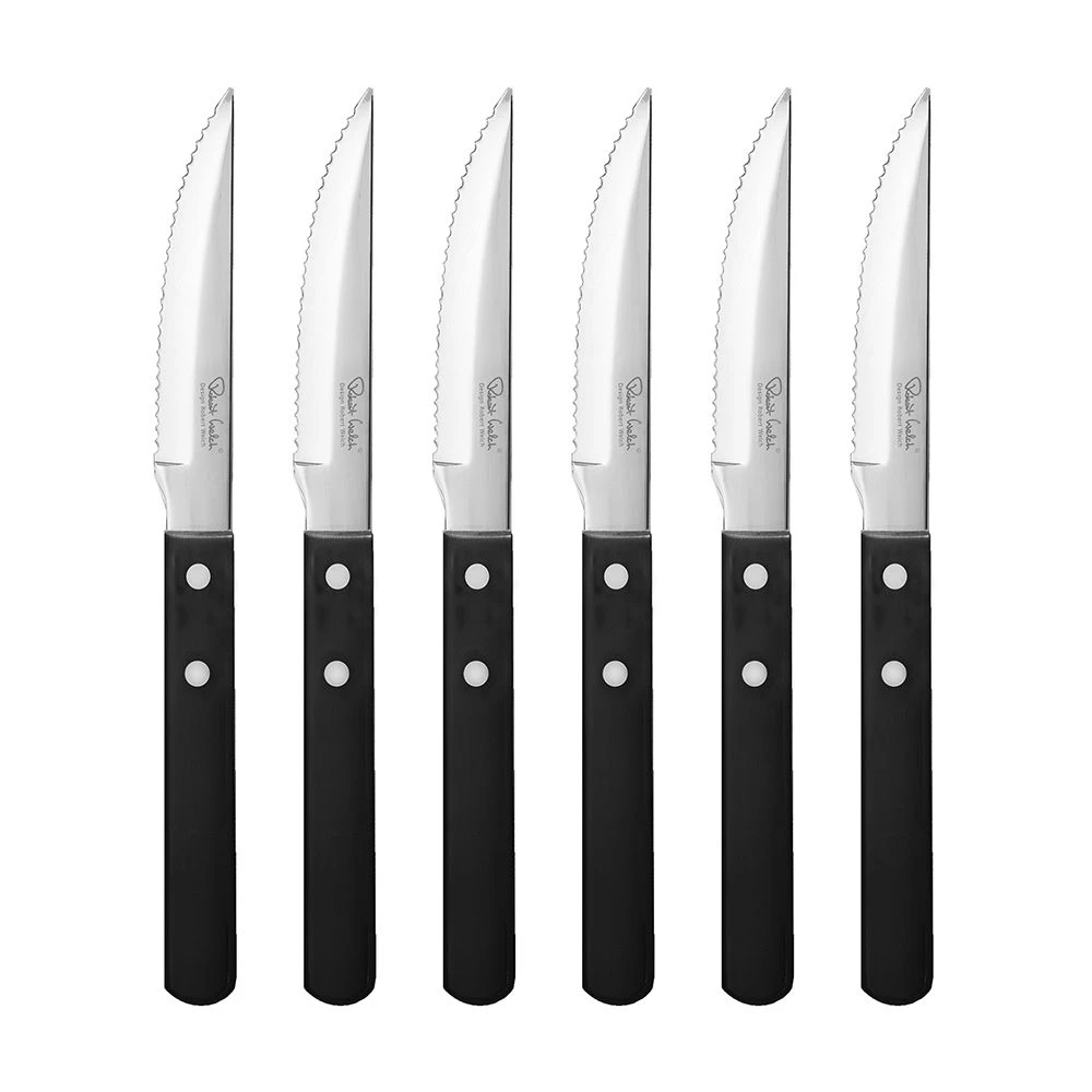 A 6 piece, gift boxed steak knife set from the traditional, bistro-styled Trattoria Bright cutlery range. Made from specially hardened stainless steel with a mirror-polished finish. Dishwasher safe and a 10 year guarantee