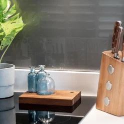 The Sakai Takayuki Homura Guren Japanese Chef’s Kengata-Utility Knife 150mm with Urushi Lacquered Oak Handle is versatile, smaller knife for slicing, mincing and prep work. The utility knife is between a chef’s knife and paring knife in size. A great multipurpose knife for fruits, vegetables with fine skins or soft insides. Ideal knife for slicing salami, sausage, avocados and small soft or hard-crusted bread.