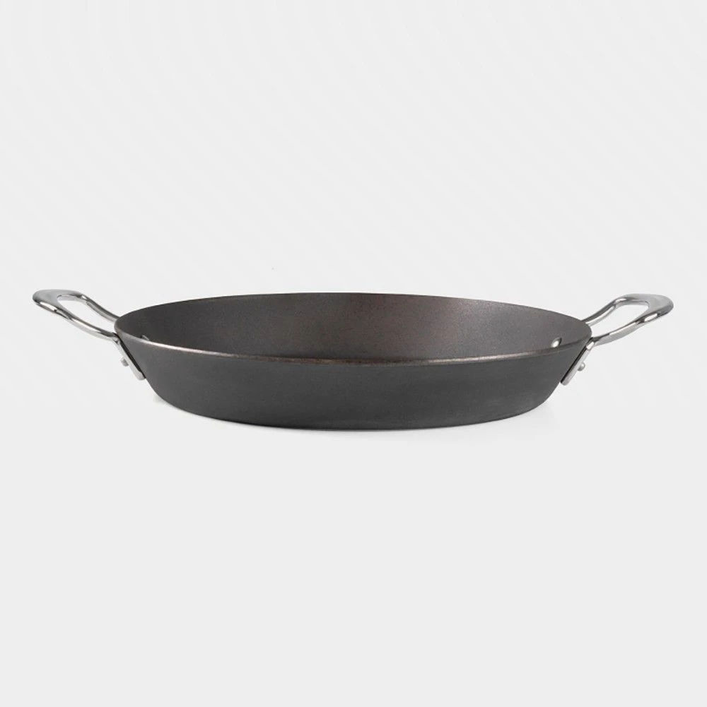 The 30cm Seasoned Carbon Steel Double Handle Paella Pan guarantees the best results every time you cook. The heat is distributed quickly and evenly throughout the whole pan without hot or cold spots. The Seasoned Carbon Steel range arrives at your door pre-seasoned, ready to use out the box. As the pan is oven safe, you can transfer the pan from cooking hob to the oven in order to finish your cooking.