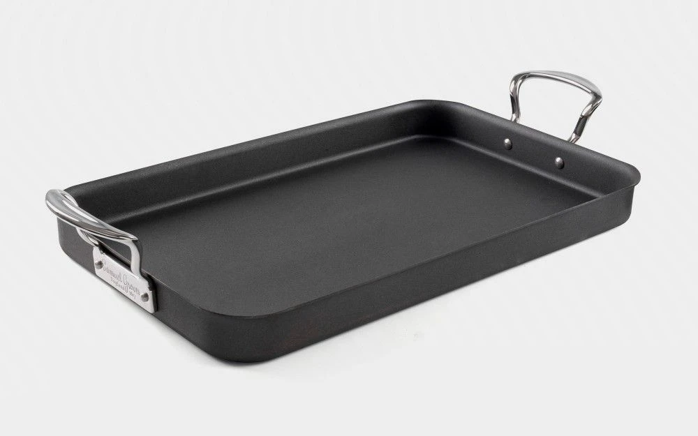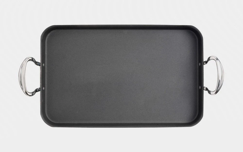 The 45cm Seasoned Carbon Steel Double Burner Griddle guarantees the best results every time you cook. The heat is distributed quickly and evenly throughout the whole pan without hot or cold spots. The Seasoned Carbon Steel range arrives at your door pre-seasoned, ready to use out the box. As the pan is oven safe, you can transfer the pan from cooking hob to the oven in order to finish your cooking.