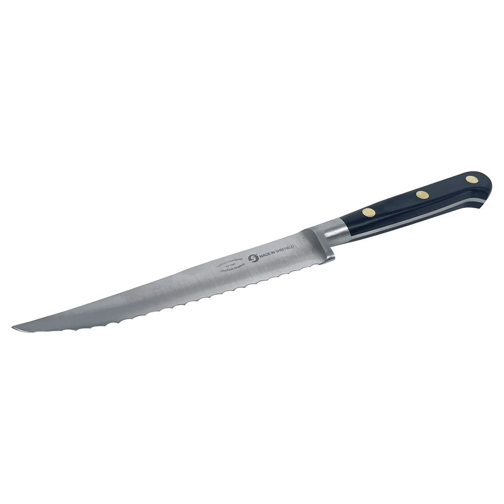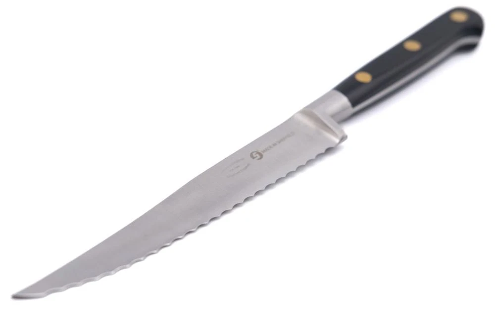 Samuel Staniforth Chefs Fully Forged Blade 13cm Serrated Utility Knife with Polyacetal Handle and Brass Rivets