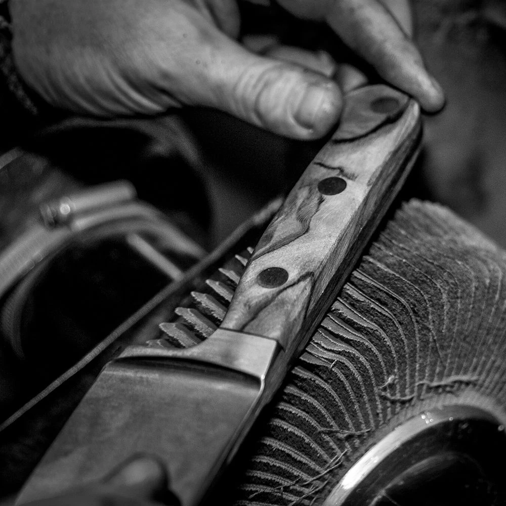 Samuel Staniforth ‘Chef’ range knives boast a traditional style of Sheffield knives. This includes the fully forged blade, forged by hand, brass rivets are secured by hand which will permanently secure the handle to the tang. The chef range, features a round bolster which counter balances the knife to ensure it can be the perfect ally in the kitchen.