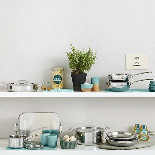 The mirror-polished finish will look good in any style of kitchen and details such as drip-free pouring rims, internal capacity markings and cast stainless steel handles set this range apart from the competition.