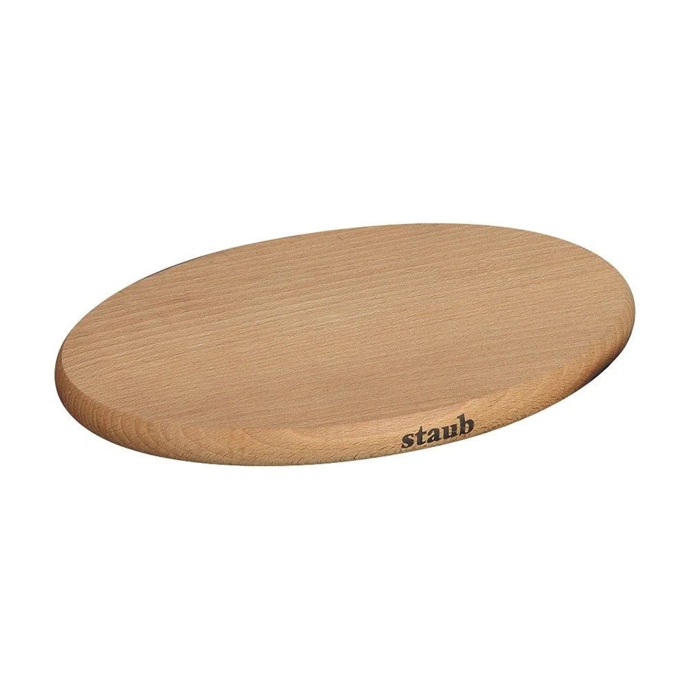The trivet measures 15 x 11 cm. The wood is lacquered so it is robust and easy to clean. Transport hot pots and pans ready to be served at the table on the Staub magnetic trivet.