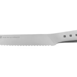 A large serrated knife that is great for slicing foods with thick crusts or rinds like artisan breads and melons/gourds. It also cuts through soft bread without crushing it.