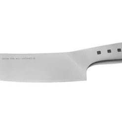 The knives feature an elegant and stylish sweeping design evoking the history of the traditional Samurai katana sword. The handles of the knives are made from stainless steel and are hollow, making these knives feel extremely light. Tojiro Sha Ra Ku Mono knives are good value for a range of high carbon Japanese steel knives and have a hardness of 56 HRC.