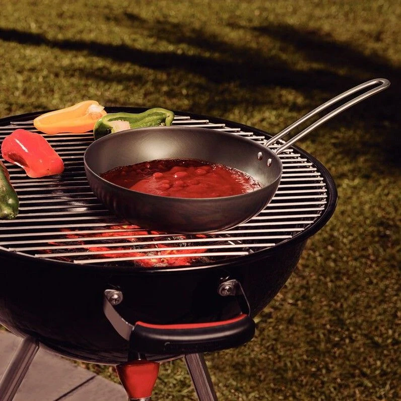 Tramontina Barbecue 24cm Wok is designed for outdoor cooking and comes with a protective coating to withstand high temperatures. Careful use of utensils and hands are required during barbecuing as the product is not heat-resistant.