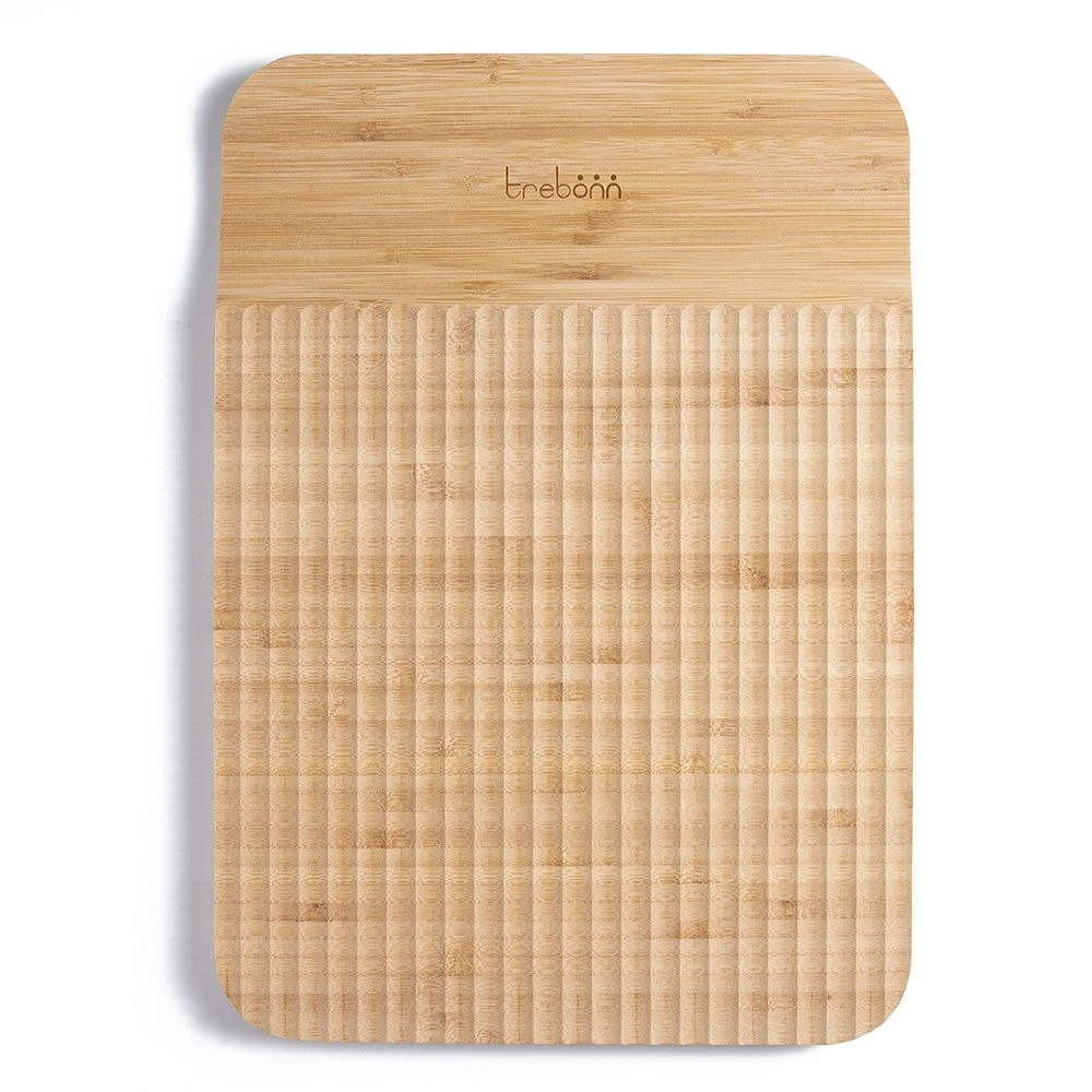 Bamboo chopping board with cut-guide pattern and food collection channel 24 x 34cm, with non-slip bottom.