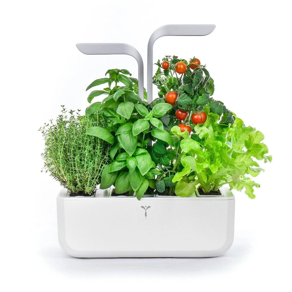 The Veritable Garden doesn’t need any natural light to grow, you can put it in a room without any windows. The two lighting poles adjust independently to adapt to different plant sizes and growth speed. The Veritable Garden works independently. It provides automated light, irrigation and nutrients to your plants. All you have to do is harvest! The water tank holds three weeks worth of water. You can go on holidays and your Veritable Garden will take care of everything while you are away.