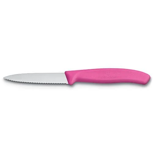 The Classic range includes a long list of knives for all your kitchen needs. range includes a long list of knives for all your kitchen needs.The ultra-sharp serrated blade on the Victorinox Swiss Classic 2x 8cm Paring Knife with Point Serrated Pink is is perfect for cutting a wide variety of foods and really is a perfect all-rounder knife.