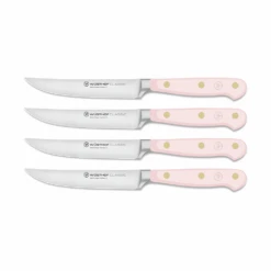 The iconic Wüsthof Classic Steak Knife is, like anything and everything Wüsthof, forged in a centuries-old global destination for knife artisanship: Solingen, Germany. The extra-sharp blade cuts perfectly through your favourite meat and vegetable dishes and compliments any table setting beautifully. Each Classic steak knife is forged from a single piece of specially tempered, high-carbon steel and precision-sharpened to stay sharp for longer. The elegant handle is triple riveted and equipped with a full tang for superior safety and durability. The Wüsthof Classic 4-piece Steak Knife set includes four (4) 12 cm Classic steak knives in your choice of colour.