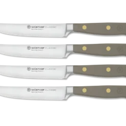 The iconic Wüsthof Classic Steak Knife is, like anything and everything Wüsthof, forged in a centuries-old global destination for knife artisanship: Solingen, Germany. The extra-sharp blade cuts perfectly through your favourite meat and vegetable dishes and compliments any table setting beautifully. Each Classic steak knife is forged from a single piece of specially tempered, high-carbon steel and precision-sharpened to stay sharp for longer. The elegant handle is triple riveted and equipped with a full tang for superior safety and durability. The Wüsthof Classic 4-piece Steak Knife set includes four (4) 12 cm Classic steak knives in your choice of colour.