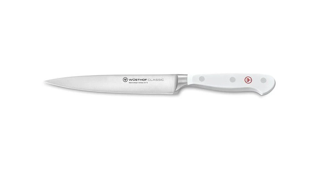 The Wusthof Classic White 16cm Utility Knife is intended for portioning, dividing and slicing food items.