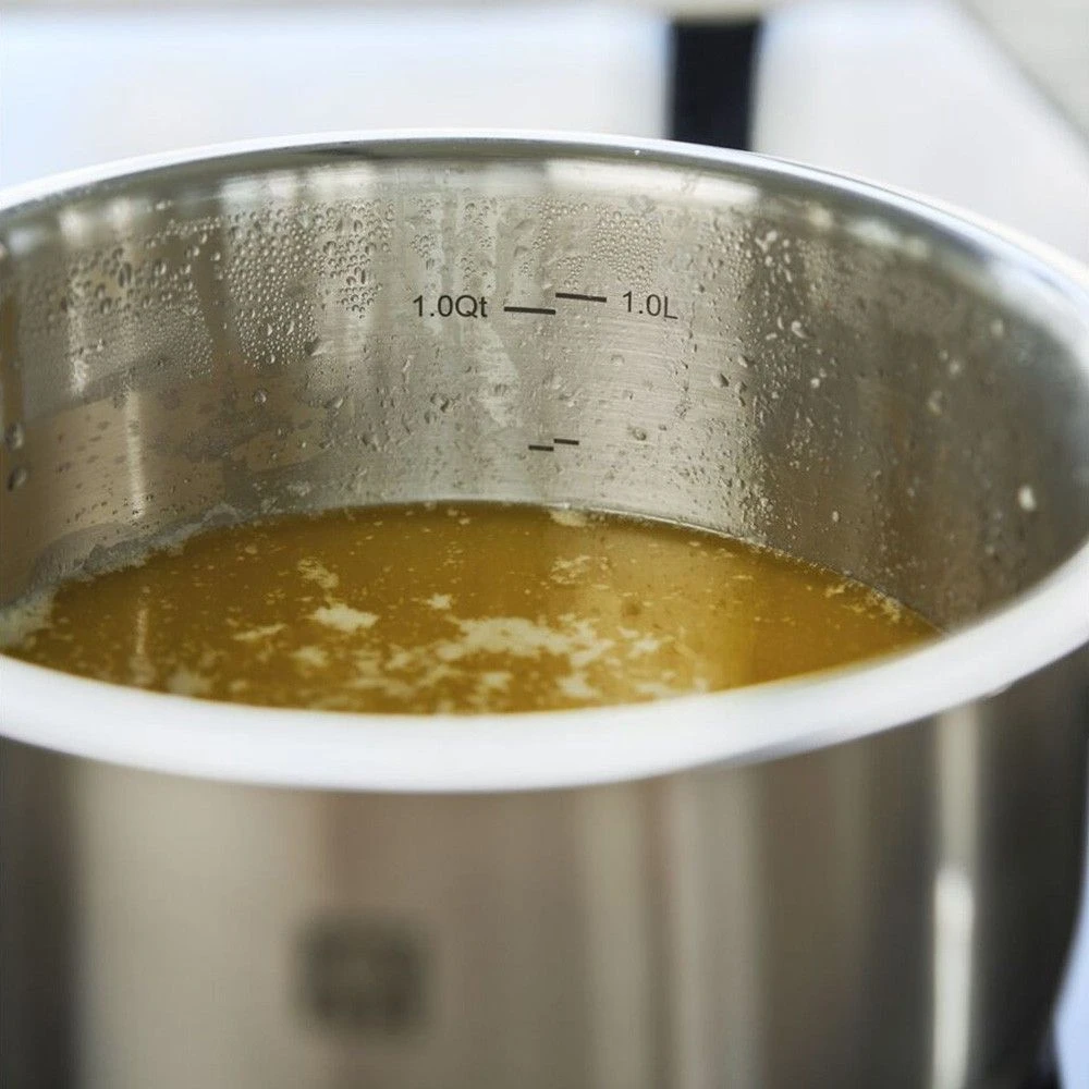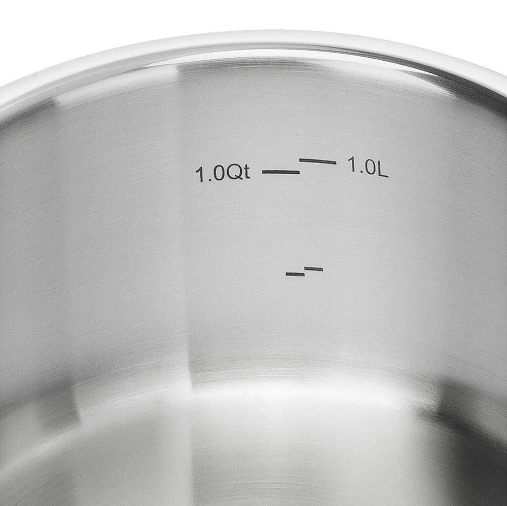The encapsulated titanium-reinforced base is especially suitable for dishwasher cleaning as it ensures scratched-proofing and easy washing in soapy water. The 18/10 stainless steel material is hygienic, robust, and scratch-resistant. It also has a wide pouring rim to make it easier to pour without dripping. There’s an integrated measuring scale on the side of the pan that takes away any need to worry about measuring out the right amount of food or liquid before or during cooking – making your time in the kitchen more efficient and leading to better quality meals all round.