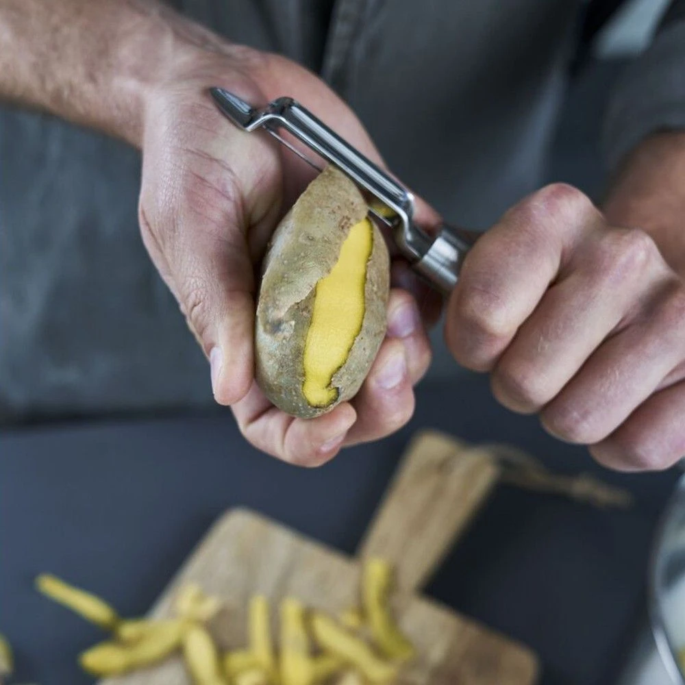 A straightforward peeler with a sleek, minimalistic design. Manufactured from premium-quality stainless steel, the peeler is comfortable to hold and dishwasher safe. The swivel blade adjusts to the fruit or vegetable you’re peeling for an easy and efficient peel.