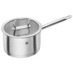 This sauce pan from Zwilling Pro is of the SIGMA Classic+ series, and it has a sandwich base made of aluminum and copper, which ensures that heat is stored and spread evenly across the bottom of the pot. This means you can save energy when cooking because less heat is lost through the sides of the pot.