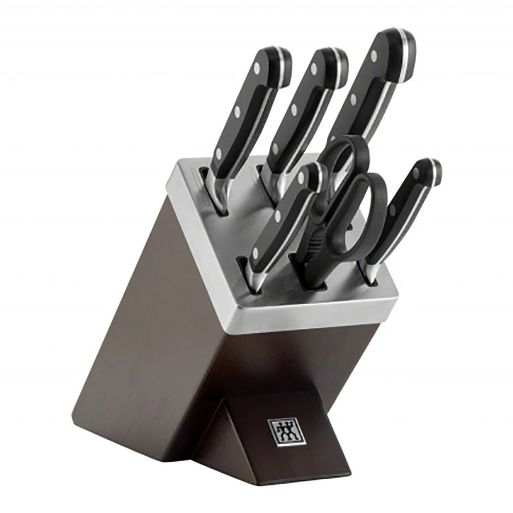 This ZWILLING SharpBlock is already equipped with knives from the PROFESSIONAL S series. All knives deliver with the timeless and seamless plastic handle and are characterised with optimal balance.