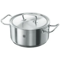 Cook up a storm in the kitchen with this stew pot from Zwilling. The 18/10 stainless steel construction with an aluminium core and top quality magnetic chromium steel base exterior ensures fast and even heat distribution, while the 3-ply sandwich base ensures even heat distribution on induction hobs.