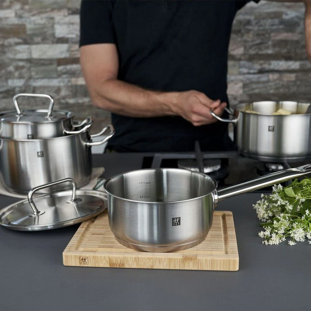 The Zwilling Twin Classic 4 Piece 18/10 Stainless Steel Pot Set is perfect for the kitchen novice or the seasoned pro. From sauteing to simmering, from boiling to braising, this set has every pot you need. And thanks to its quality materials and timeless design, it’ll last a lifetime.